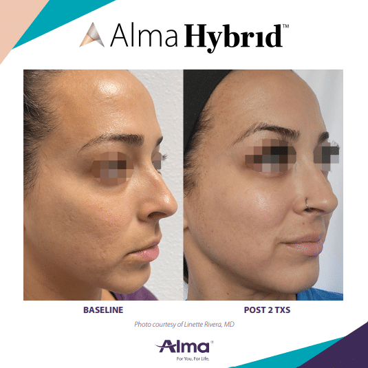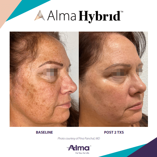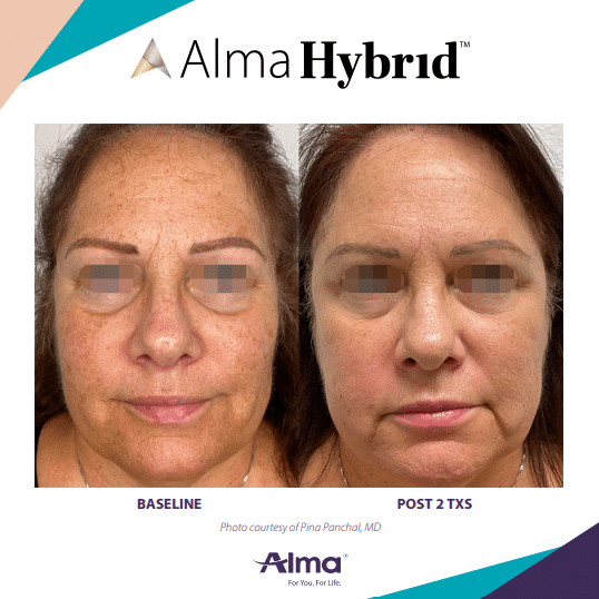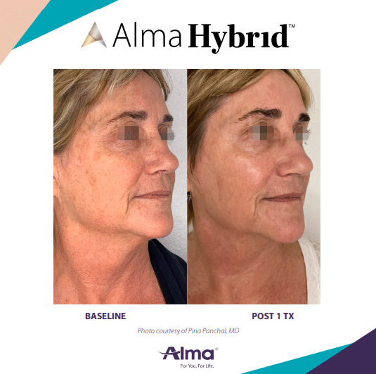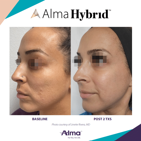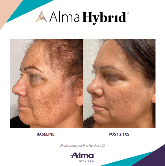 The Alma Hybrid platform allows us to customize the depth, density, and intensity of your treatment. The fractional CO2 component resurfaces the skin’s surface layers, while the non-ablative 1570nm laser penetrates deeper to stimulate collagen without fully removing tissue.
